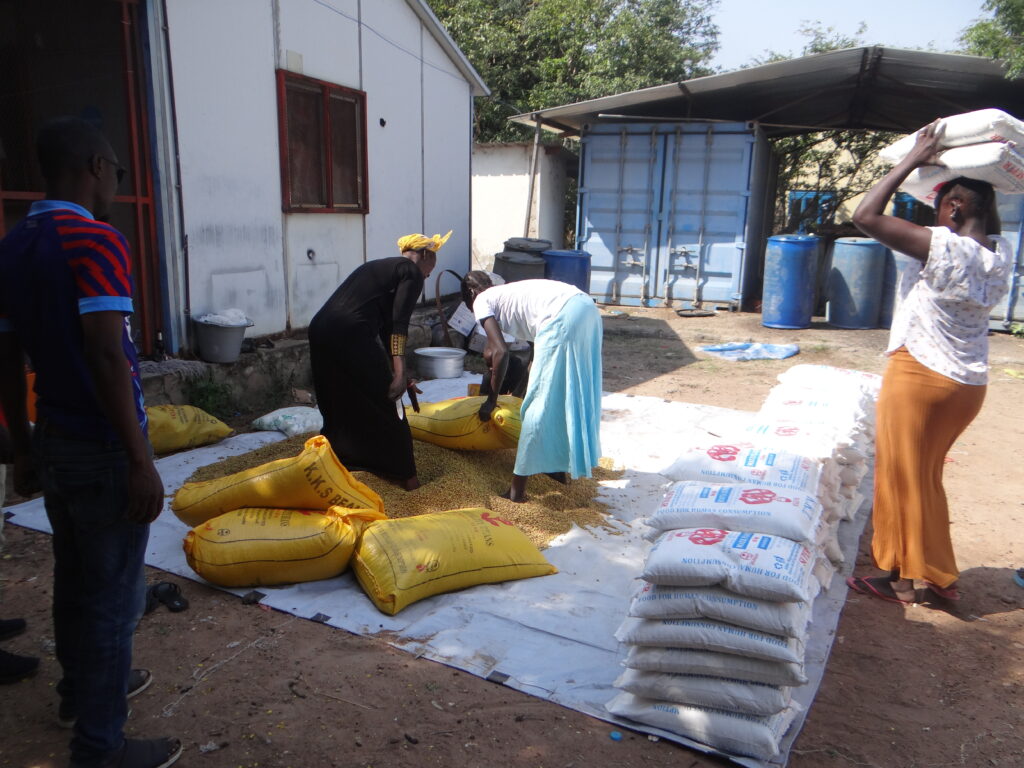 “Participants harvesting maize in the community fields under Caritas Polandâs livelihood support program.”