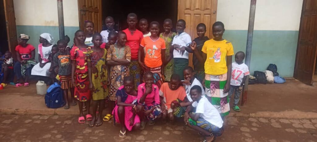 “Community members and students posing for a group photo during Caritas Poland activities.”